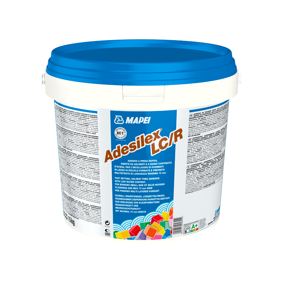 Mapei ADESILEX LC/R 15 kg est une colle en dispersion aqueuse à prise rapide, idéale pour le collage de parquets en bois massif et contrecollé. Elle garantit une adhérence optimale et une grande résistance sur divers supports, y compris les planchers chauffants.