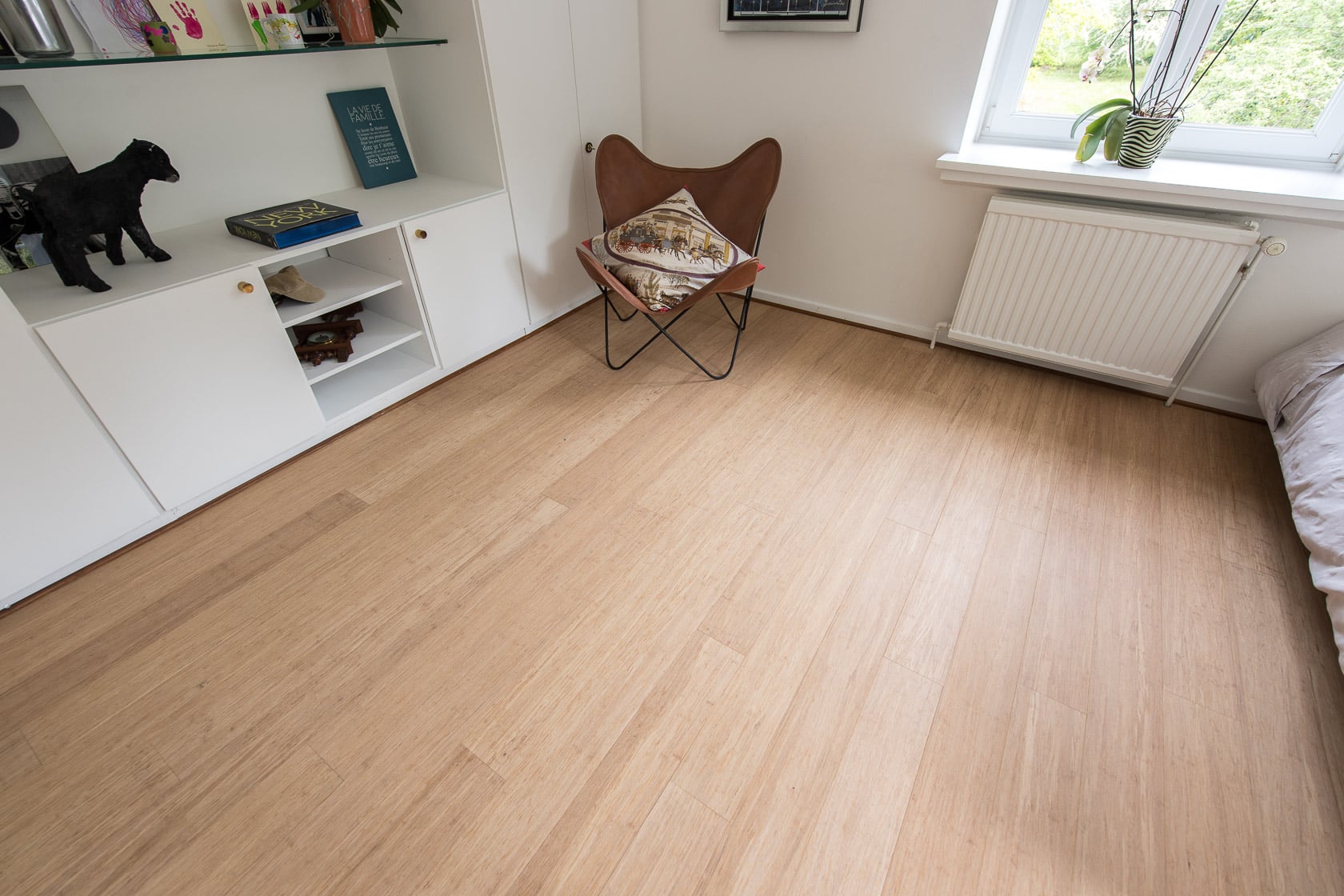 Parquet en bambou massif monocouche, lames courtes.