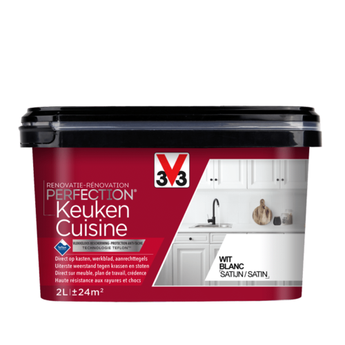 Peinture destinée aux meubles de cuisine, crédences, plans de travail et électroménagers, neufs ou anciens, en: