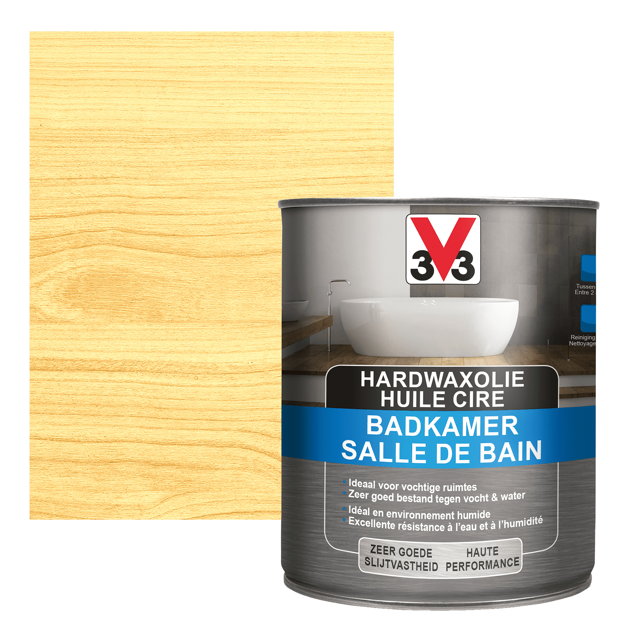Protégez votre parquet dans la salle de bain avec l’huile cire de parquet V33 salle de bain incolore mat 2,5 L. Elle contient des huiles naturelles renforcées en agents anti-humidité qui offrent une protection durable contre l’humidité et l’eau. L’addition de cire offre également une protection efficace contre les taches et la saleté. Appliquez là sur vos parquets, planchers, en bois neuf ou ancien, d’essence européenne ou exotique.