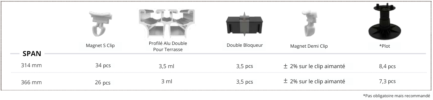 Description Surface en grain de bois avec un revêtement protecteur. Fabriquée selon un processus de co-extrusion doté d’un profil breveté asymétrique avec des espaces invisibles, un corps solide, une surface supérieure avec une texture boisée et des rainures inférieures pour les clips magnétiques S. Tableau de consommation Caractéristiques