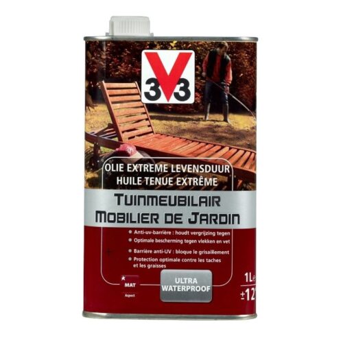 Optez pour une protection imperméable extrême de votre mobilier de jardin avec l’huile de mobilier de jardin V33 Tenue Extrême 1L. Cette huile est ultra étanche et enrichie en composants anti UV. L’huile d’abrasin contenue dans la formule rend le bois complètement imperméable à l’eau et à l’humidité
