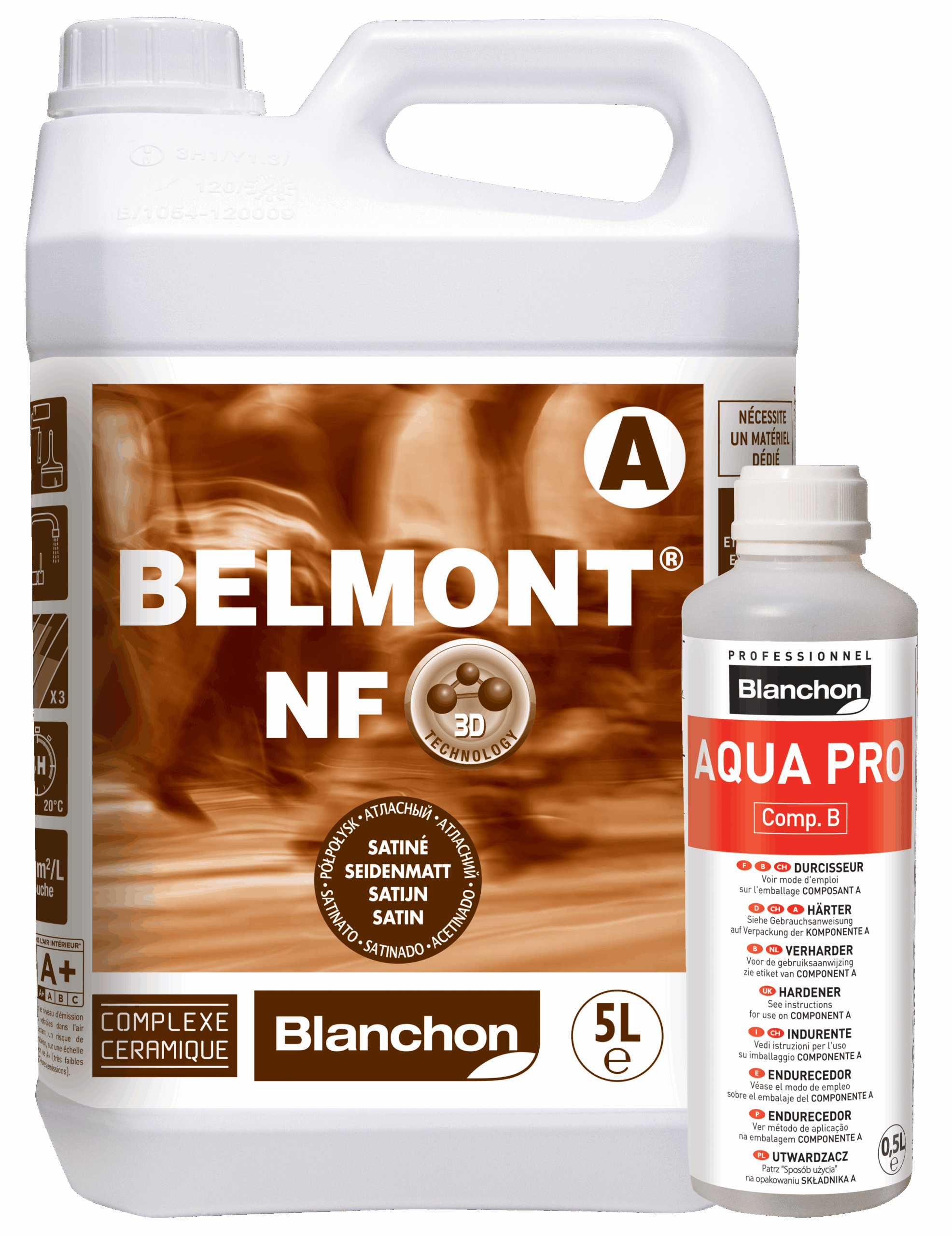 Le Vitrificateur Parquet polyuréthane BELMONT® Nouvelle Formule est en phase aqueuse à Complexe Céramique pour un très haut trafic dans les lieux publics. Sans odeur|le Vitrificateur Parquet Belmont® Nouvelle Formule est issu de nouvelles résines mises au point par Blanchon pour leur extrême résistance à l’abrasion|chimique et à la rayure. Doté de performances exceptionnelles et d’un durcissement rapide|Belmont® est destiné aux lieux particulièrement soumis à un trafic très intense et à de fortes sollicitations : ERP|musées|restaurants|commerces|bureaux|hôtels|salles de conférences|écoles|couloirs|entrées|etc. Il est idéal pour les lieux de Prestige. FDS