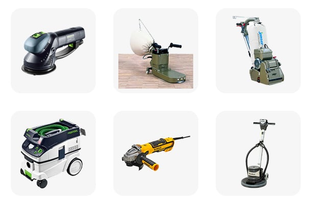Pour poncer un parquet il vous faudra : une ponceuse à bande ; une bordureuse, une monobrosse, un disqueuse avec plateau de ponçage, une ponceuse rotative de type Rotex de chez Festool et un aspirateur professionnel (les sciures de bois sont fines et importante)